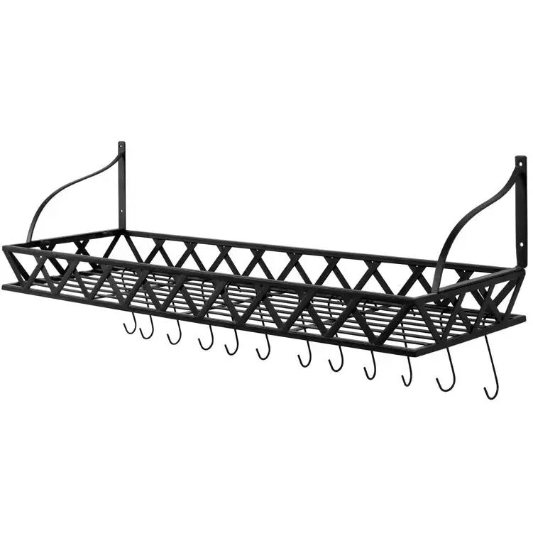 Black Mounted Kitchen Pot Rack with 12 Hanging Hooks